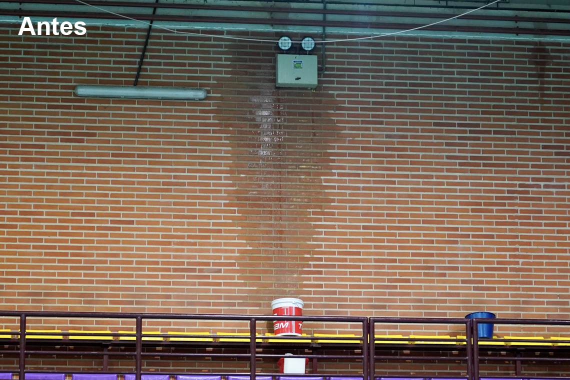• El objetivo de esta inversión ha sido arreglar el estado de las dos cubiertas que componen el Pabellón M4-Sonia Abejón. Así, se ha sustituido la cubierta plana transitable en toda su superficie que presentaba un estado muy deteriorado por el paso del tiempo, que ocasionó goteras en la pista, vestuarios, aseos, oficinas