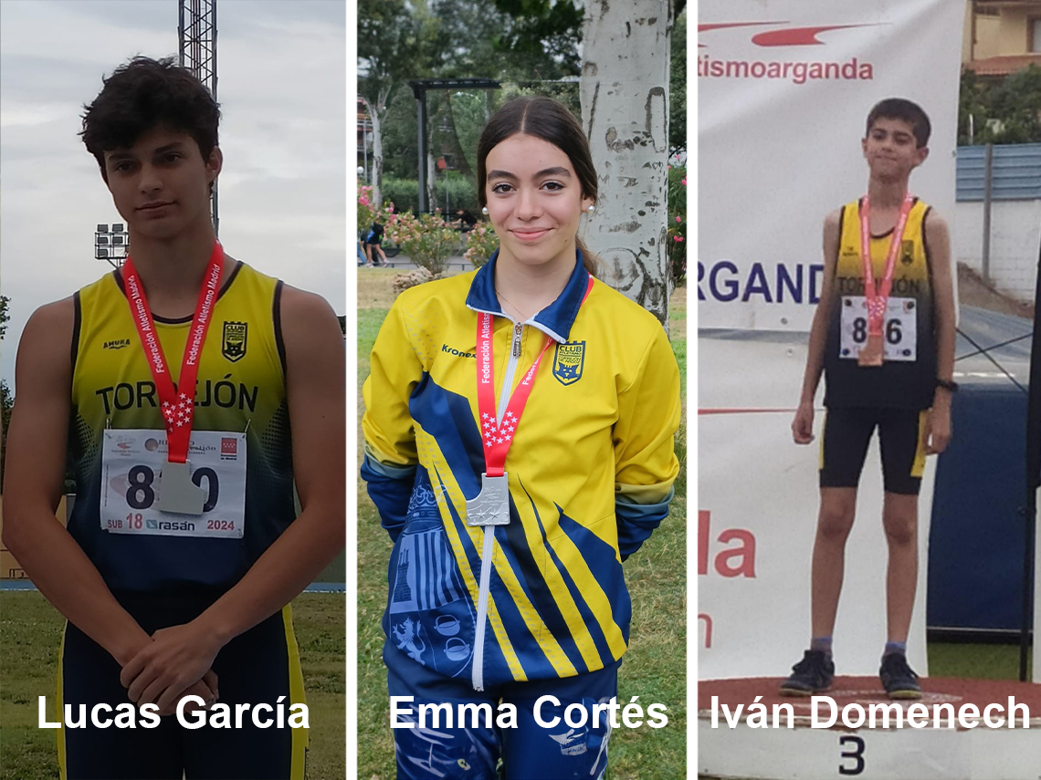 Torrejón de Ardoz, 18 de junio de 2024. Lucas García y Emma Cortés quedaron subcampeones en 400 metros y en lanzamiento de disco sub-18, respectivamente. Iván Domenech se colgó la medalla de bronce en la prueba de 50 metros vallas en categoría sub-12.