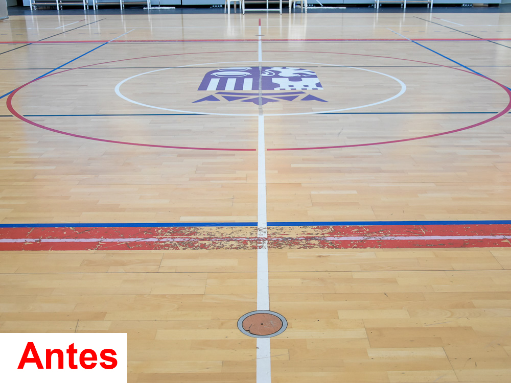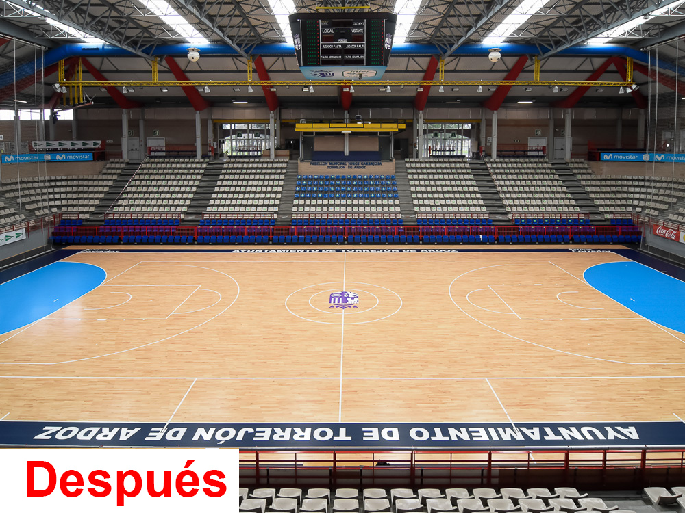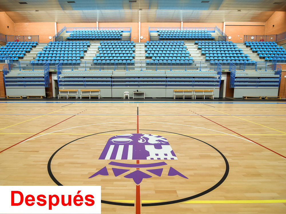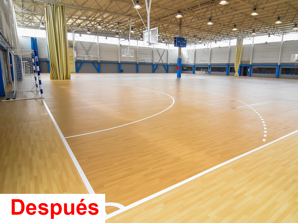 -Reparación de la tarima, en los pabellones Jorge Garbajosa, José Antonio Paraíso y Nuria Fernández, sustituyendo la superficie deportiva de juego.