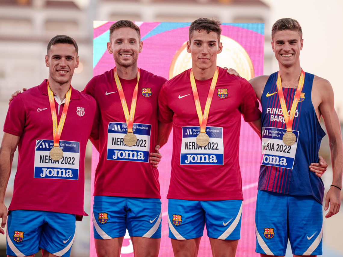 Torrejón de Ardoz, 30 de junio de 2022. Además de la medalla de oro, Pablo Sánchez-Valladares y sus compañeros de equipo del FC Barcelona establecieron un nuevo récord del campeonato parando el crono en 3:07.79, mejorando en más de medio segundo la anterior marca que estaba en 3:08.33.