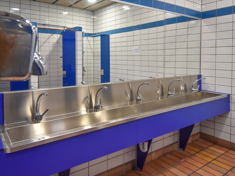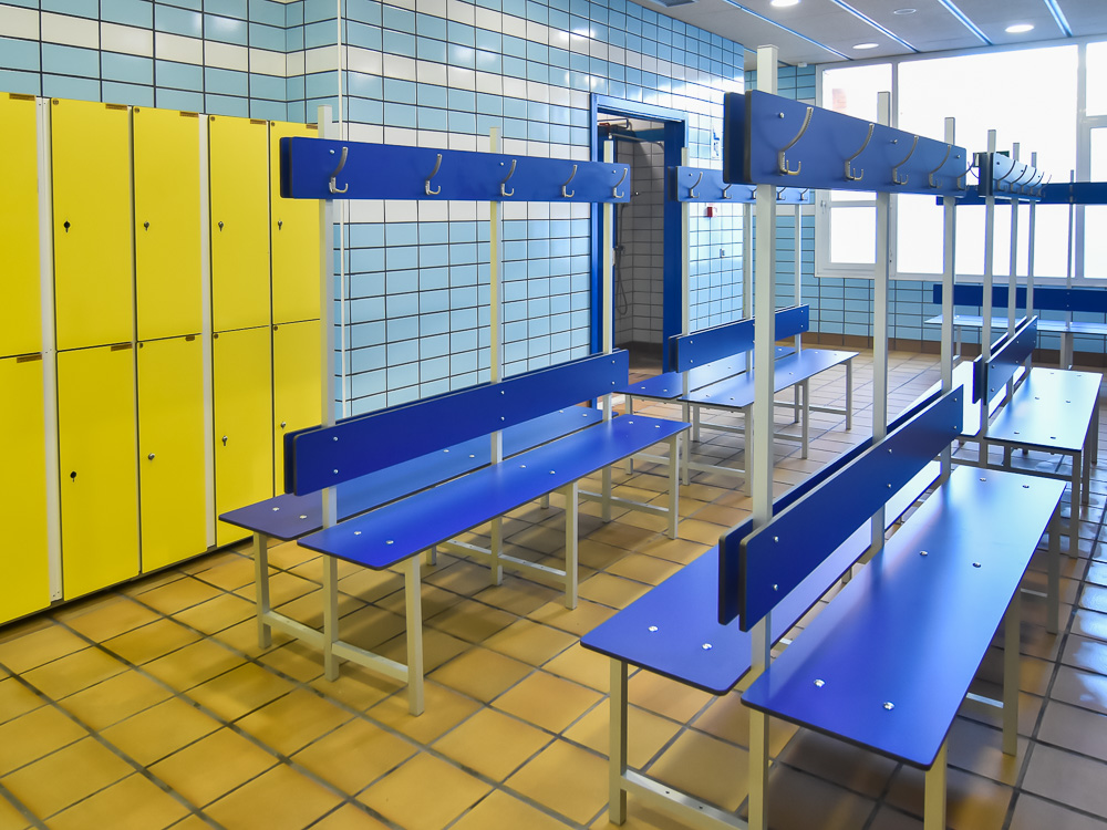 • En el vestuario de adultos se han renovado los alicatados y solados. El vestuario infantil se ha dotado de una zona de cambio común, duchas adaptadas, piletas para bebés, y aseos que permiten un espacio diferenciado de los vestuarios destinados a los adultos acompañantes, además ahora esta zona tiene acceso independiente a las piscinas