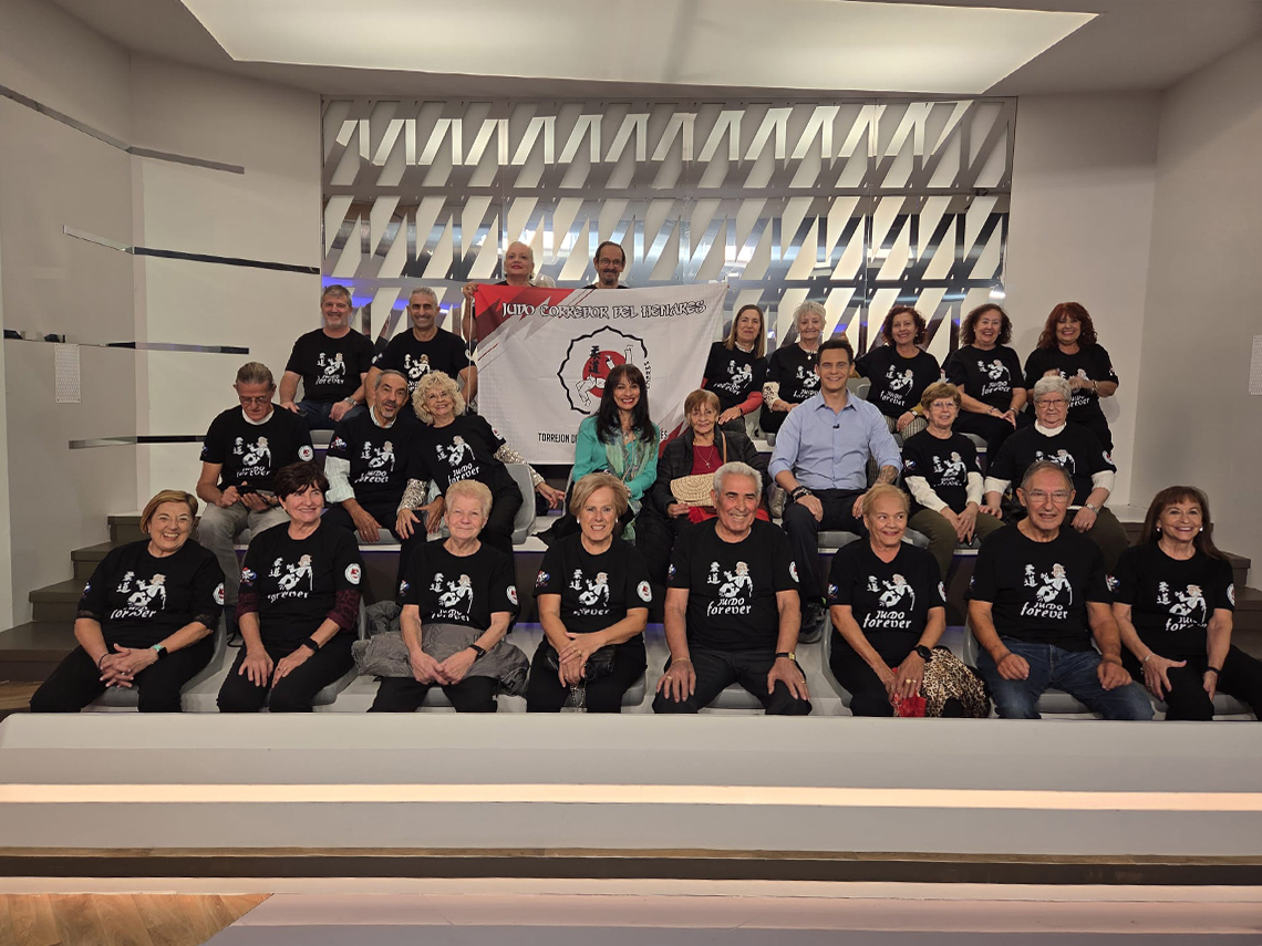 Los alumnos que participan en el proyecto de judo para mayores del Ayuntamiento de Torrejón de Ardoz estuvieron en el programa de Telemadrid, La Tarde, presentado por Christian Gálvez, con motivo del Día Mundial del Judo