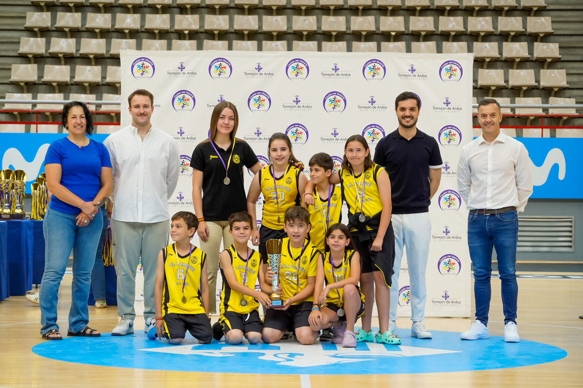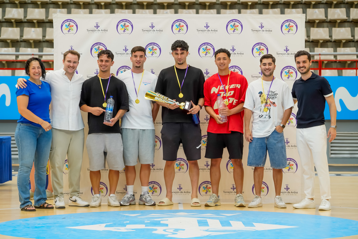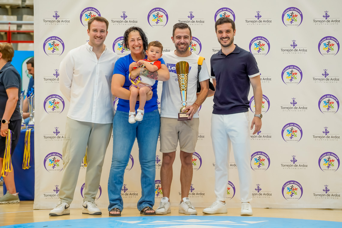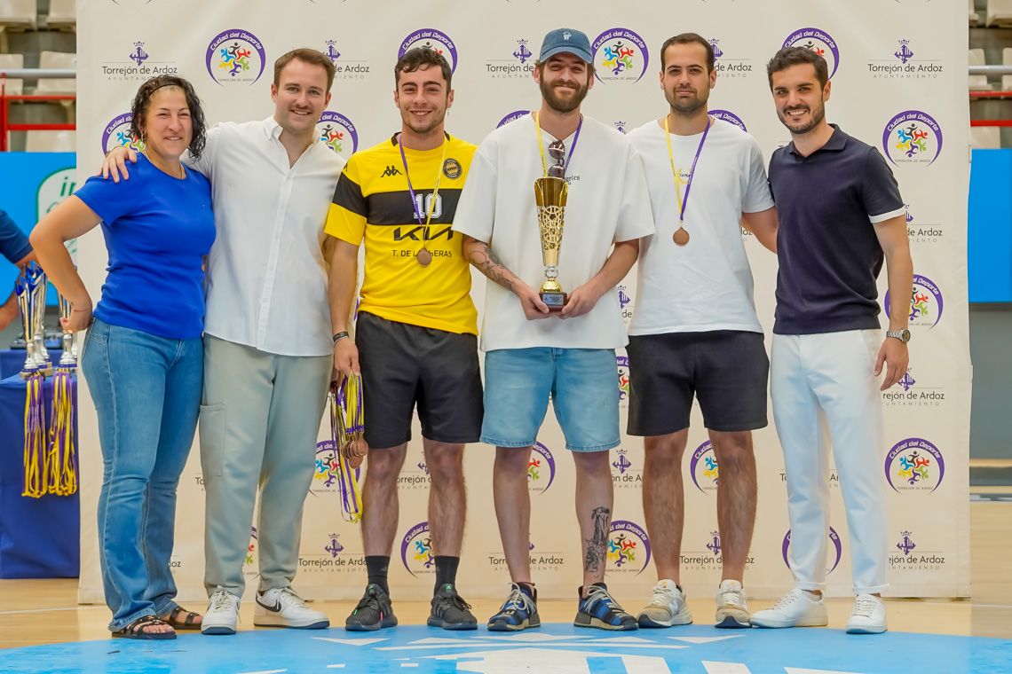 Torrejón de Ardoz, 13 de junio de 2025. El pasado domingo, en el Pabellón Jorge Garbajosa, tuvo lugar la entrega de premios a los mejores equipos de cada categoría en fútbol sala, fútbol 7, baloncesto y voleibol, y a los mejores jugadores, en el caso del tenis. El acto contó con la presencia del alcalde, Alejandro Navarro Prieto, y de otros miembros de la corporación municipal.