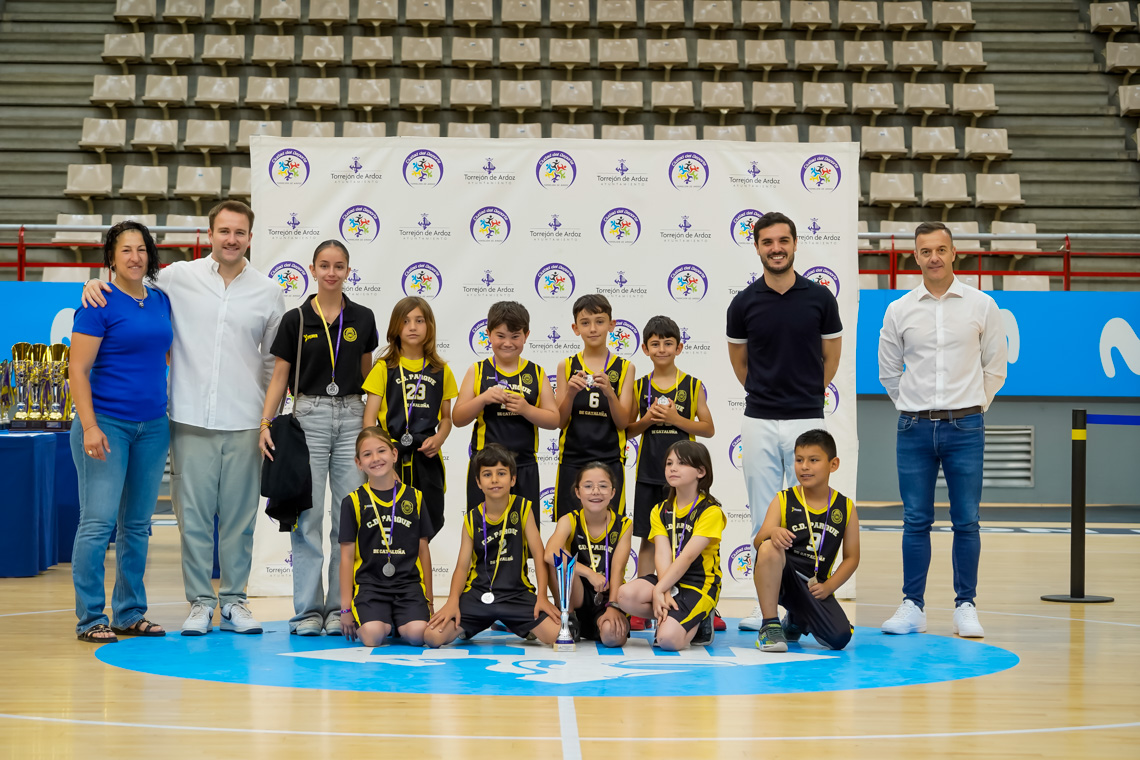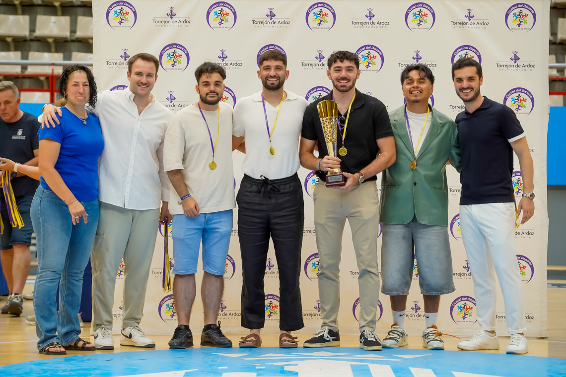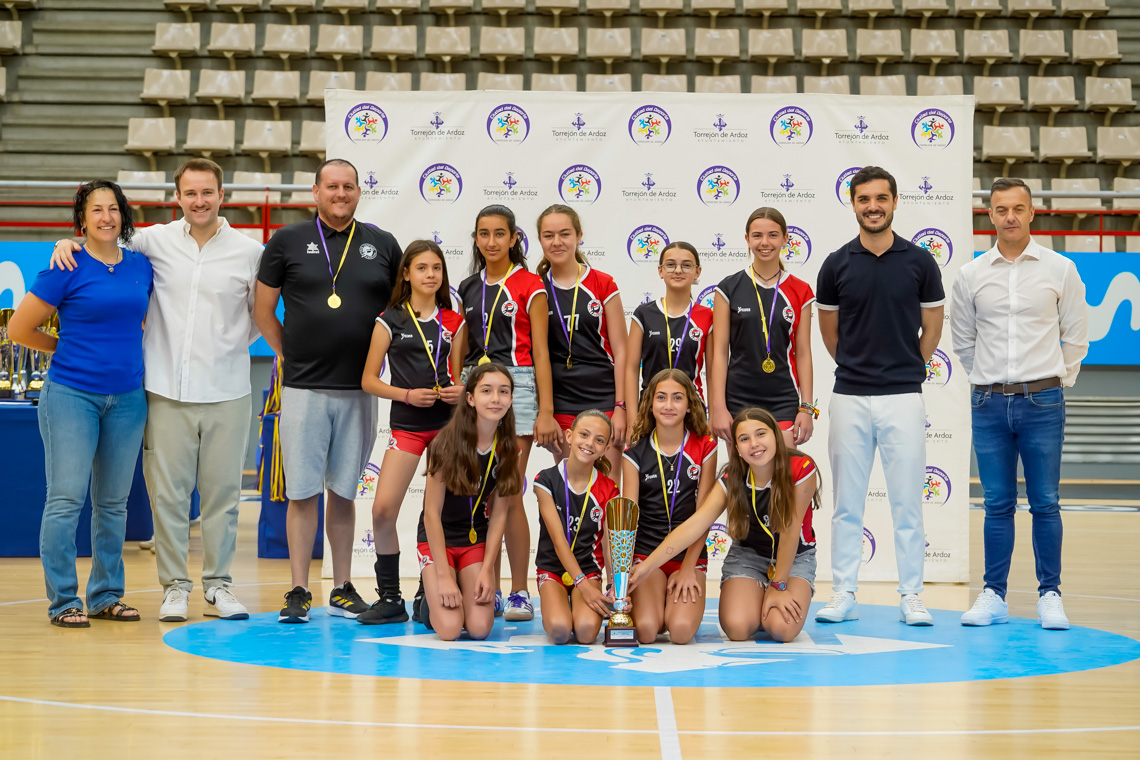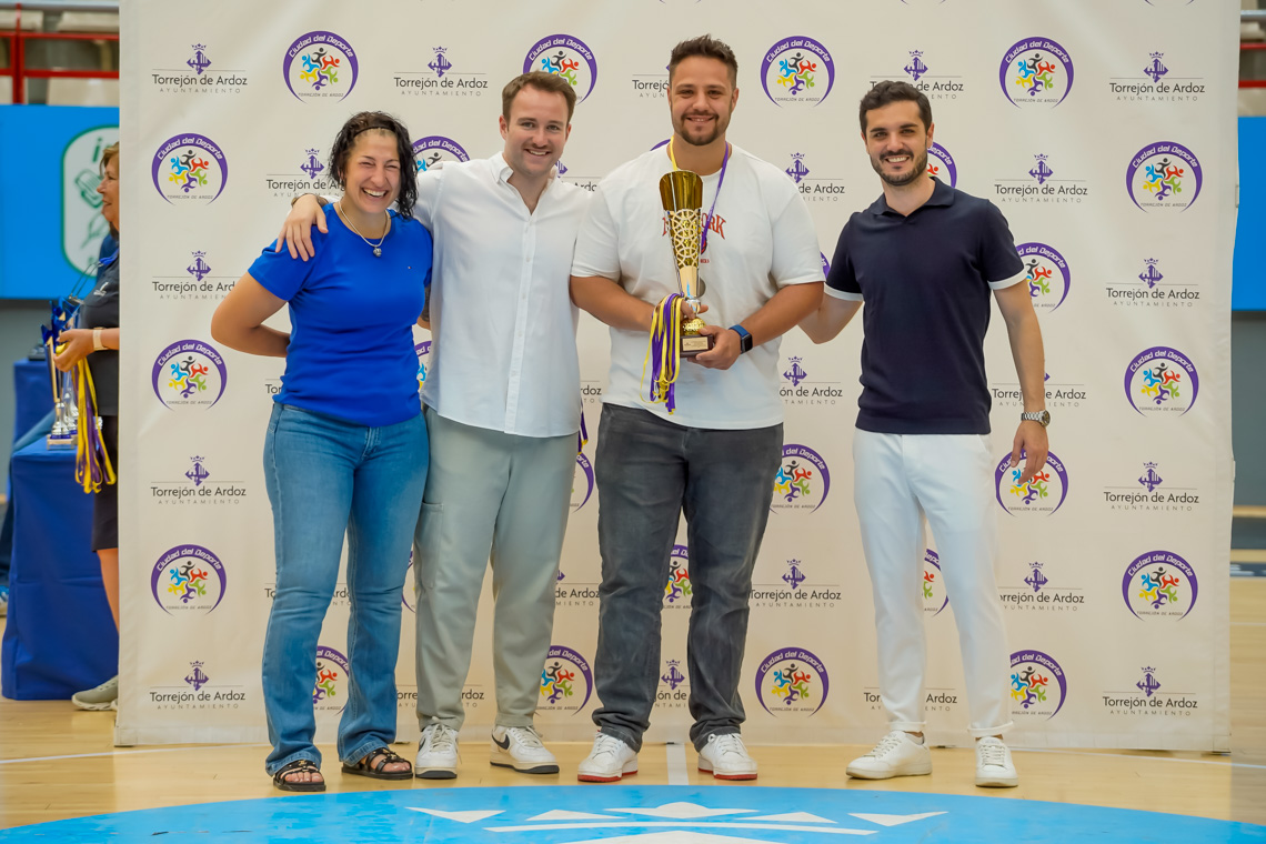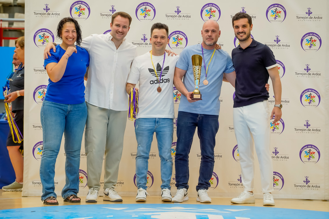 Torrejón de Ardoz, 13 de junio de 2025. El pasado domingo, en el Pabellón Jorge Garbajosa, tuvo lugar la entrega de premios a los mejores equipos de cada categoría en fútbol sala, fútbol 7, baloncesto y voleibol, y a los mejores jugadores, en el caso del tenis. El acto contó con la presencia del alcalde, Alejandro Navarro Prieto, y de otros miembros de la corporación municipal.
