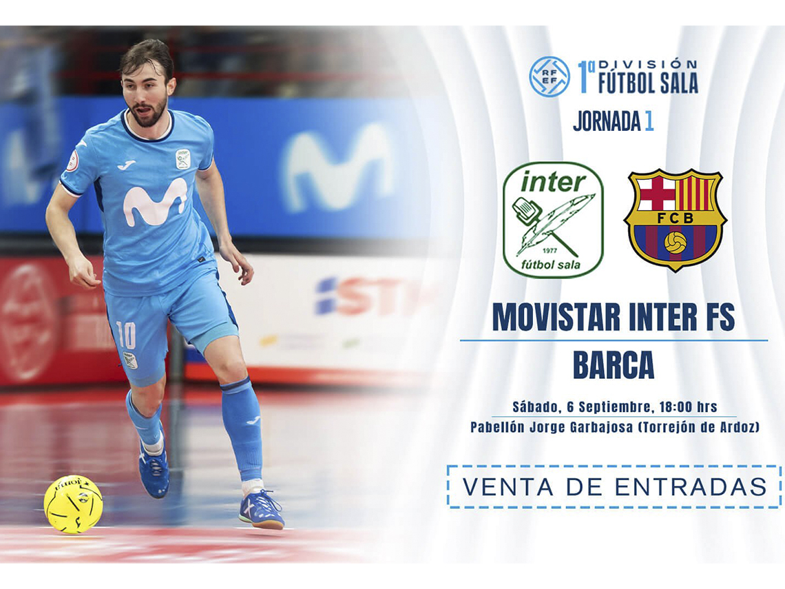 Este fin de semana comienza una nueva temporada en la Primera División de fútbol sala y Movistar Inter lo hace enfrentándose al Barça en el Pabellón Jorge Garbajosa. El partido se disputará mañana, sábado, 6 de septiembre, a las 18:00 horas y contará con la presencia del alcalde, Alejandro Navarro.