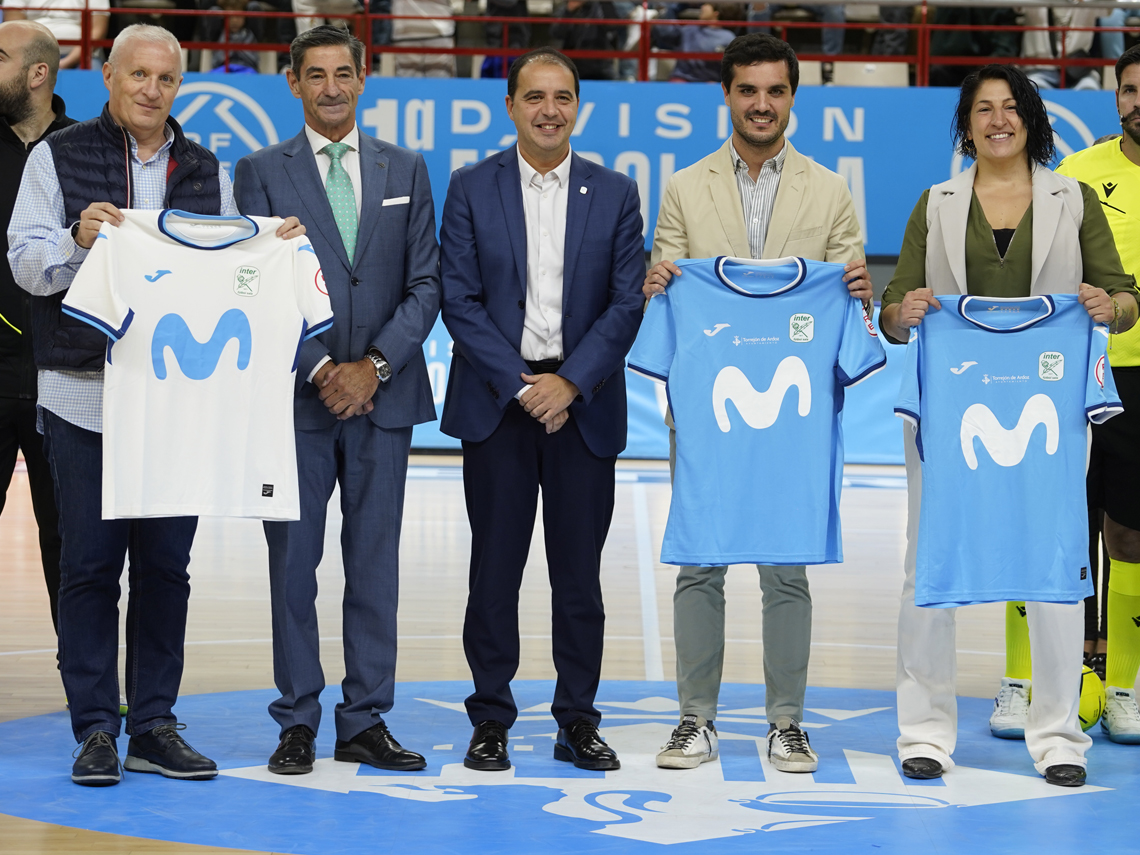 Torrejón de Ardoz, 27 de septiembre de 2024. El partido terminó con victoria interista por 6-3. Antes del encuentro, el presidente del club, José Manuel Saorín, y el director general, José Carlos Delgado, hicieron entrega de unas camisetas personalizadas de la nueva temporada al alcalde, Alejandro Navarro Prieto, al concejal de Deportes y Movilidad, José Miguel Martín Criado, y a la concejala de Turismo, Miriam Gutiérrez, como muestra de agradecimiento por parte de Movistar Inter FS al Ayuntamiento de Torrejón de Ardoz por su apoyo.