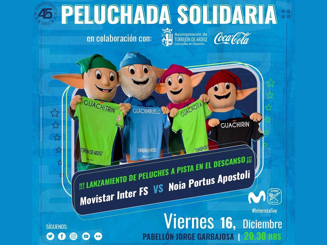 La programación deportiva en Torrejón de Ardoz de este fin de semana comienza hoy viernes con el partido entre Movistar Inter y Noia Portus. El encuentro, que se disputa en el Pabellón Jorge Garbajosa, comenzará a las 20:30 horas. Además, desde el club interista se ha organizado una recogida solidaria de peluches entre los aficionados que acudan al partido y que serán lanzados desde la grada a la pista durante el descanso. Los entrañables personajes de las Mágicas Navidades de Torrejón de Ardoz, los Guachis, también participarán en esta recogida animando a los espectadores. Los peluches donados se entregarán a las familias más necesitadas de la ciudad.