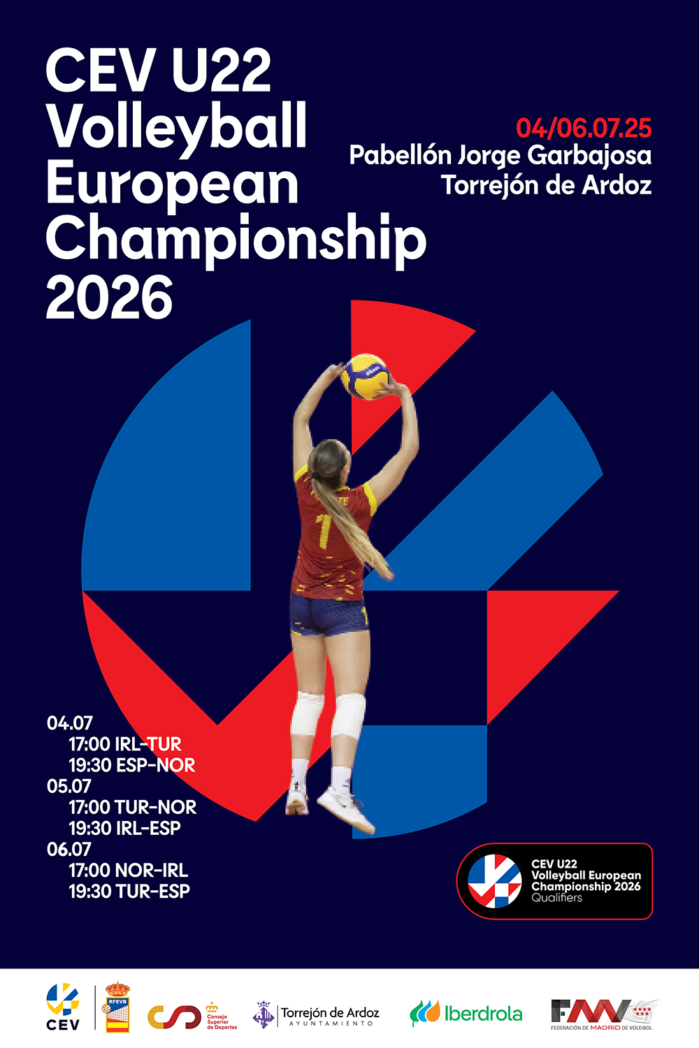 Torrejón de Ardoz se convertirá en el epicentro del voleibol femenino de categorías de base con la celebración del Preeuropeo sub-22, que contará con un total de 6 emocionantes partidos, que enfrentarán a las selecciones de España, Irlanda, Turquía y Noruega. Las citas tendrán lugar hoy, viernes 4, mañana, sábado 5, y el domingo, 6 de julio, en Pabellón Jorge Garbajosa, con entrada gratuita hasta completar aforo, y dará el pase al europeo femenino sub-22, que se disputará en Países Bajos. España jugará hoy, viernes, contra Noruega; mañana, sábado, 5 de julio, contra Irlanda; y el domingo, 6 de julio, contra Turquía. Todos los partidos los disputará a partir de las 19:30 horas.